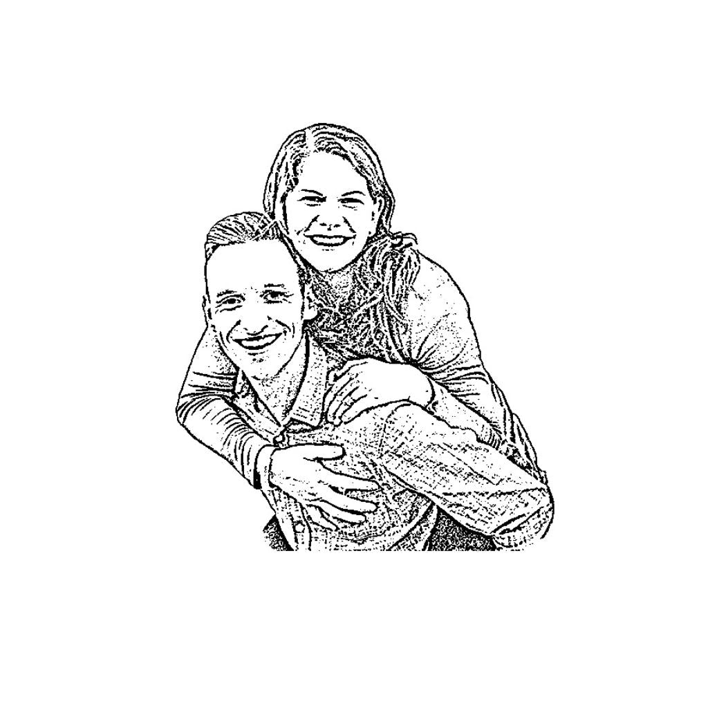 Stuur ons een foto, of het nu een groepsfoto is van je vrienden, een familieportret of een Kermit-meme, en we maken er een realistische tekening van en graveren die in een prachtige ketting die je elke dag kunt dragen of cadeau kunt doen aan iemand anders.