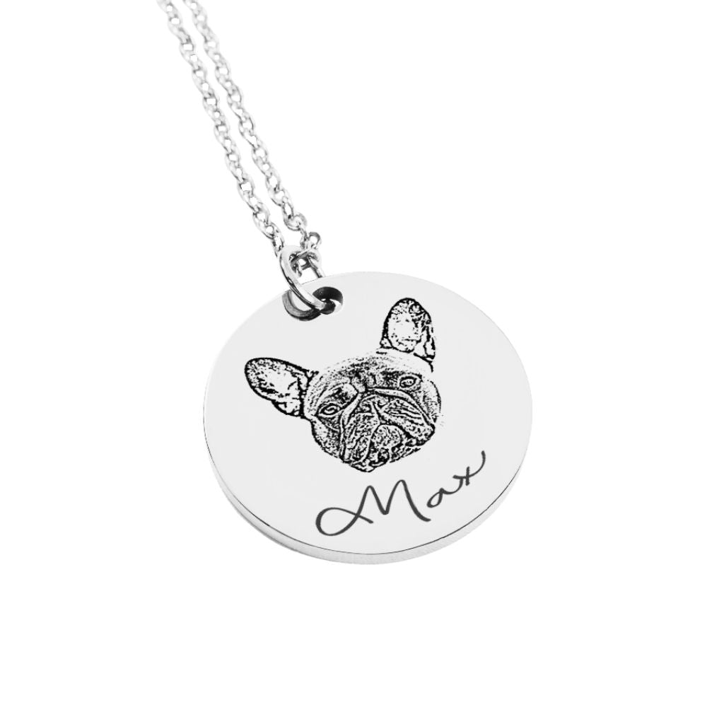 Stuur ons een foto van uw geliefde huisdier en wij maken van de foto een realistische tekening en graveren deze in een prachtige ketting die u elke dag kunt dragen.
